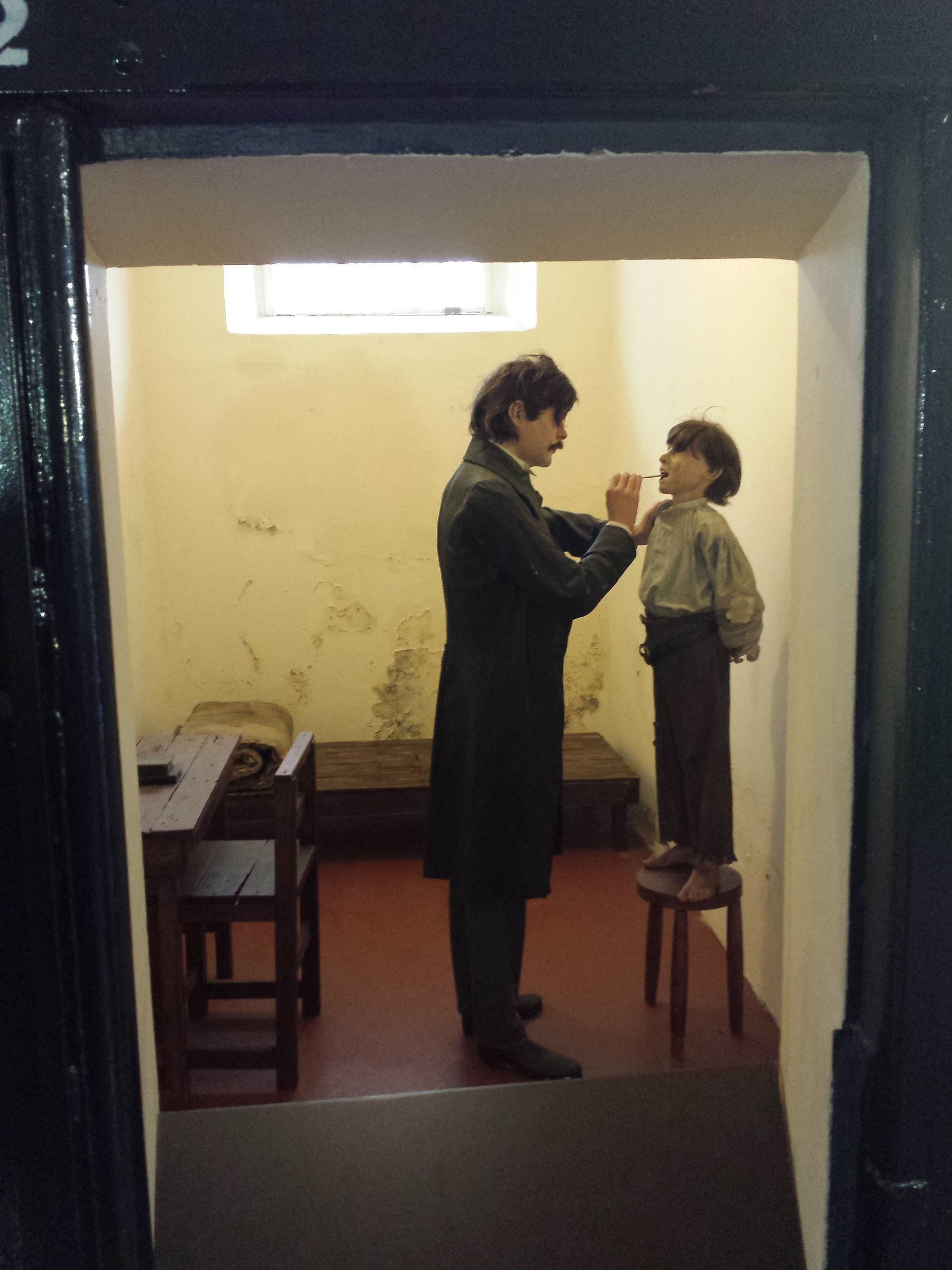 The tour started at the entrance where every prisoner arrives, afterwards we walked halfway trough the tunnel, that connects the prison with the old court house sadly we weren’t able to go in the old court house due to its bad conditions. We continued our journey at the main entrance that connects all 4 cell blocks, which were able to hold 500 prisoners, at peak there were 1400 prisoners in the prison. We moved on through cell block C where we could see all different kinds of cells starting at a normal cell that was designed for one prisoner(Child/Adult) (Yeah they also put childs in the prison, the youngest kid was about 7). In 1860 they introduced a new law preventing prisoners under 14 to serve their full sentence in a adult prison, but childs could still be sent to the prison for a short amout of time to ’scare them straight‘. Our second to last stop was the condemned cell where the condemned lived together with 2 guards 24/7. He also lived right next to the execution room but he was totally unaware of it since he was 24/7 in his cell. If you’re sentenced to death it happened by hanging. The procedure wasn’t longer than 3 minutes but the body remained there for 45-60 minutes before they pulled it down and put it into a coffin. The bodys (17 in total) were buried in a unmarked grave within the prison walls. Our last stop was the prison wall the place where they buried all the bodys you’re still able to see 2 stones engraved with the initials of two prisoners that were hanged.