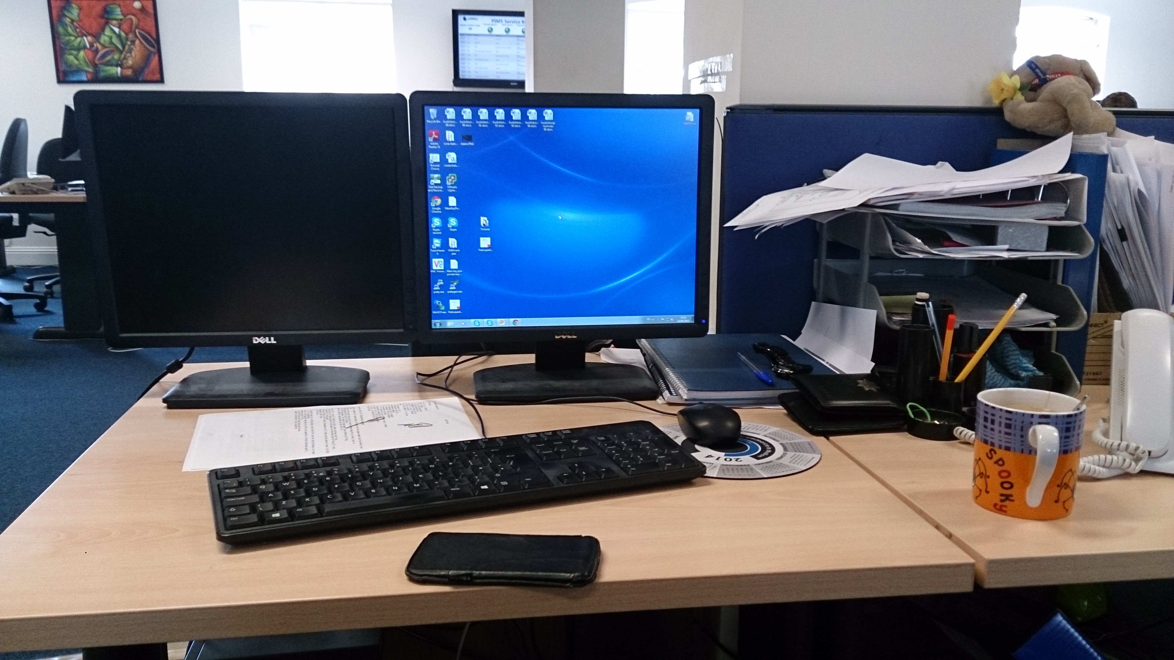 It’s a bit late for me uploading some pictures of my work space but I didn’t through about that before. The office is in the highest floor of a building on the Parnell street. The entrance is on a parking lot that is used for us and the other company’s around here. The building and the overall look in that area is not that nice. It looks really old and unkempt but the office itself is really nice and looks neat. I don’t have a picture from the hole office because its completely open and I don’t want to annoy anyone.