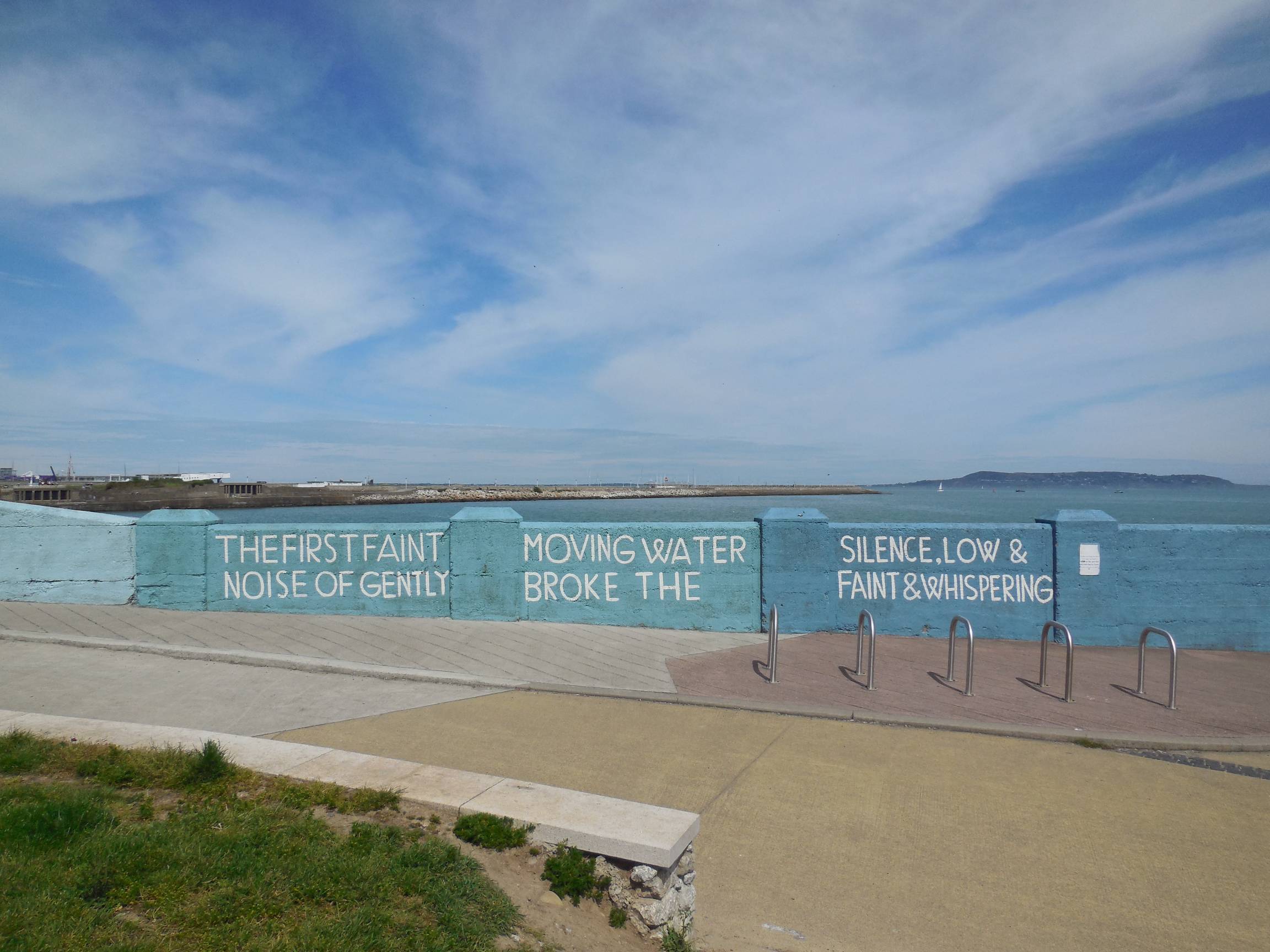 The walk towards and along the East Pier is brimming with memories, carved deep into the stone. Literally! People have carved their initials into the stone, made their confessions of love somewhat eternal or have erected monuments to honor the dead. It takes quite a while to reach the old battery right at the end of the pier but I didn’t walk fast and the pier is a mile long, after all. I had an apple on my way back and thought about walking home. it was only 2 o’clock and the walk would have taken not more than 4 hours. However, I didn’t make it past the third DART Station on my way home before deciding to break it off and just take the train and bus home. I was spent and so I also decided against going to the Docklands Festival as was my plan this morning.