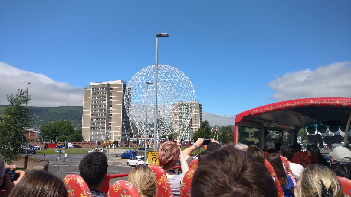 Yesterday was a really sunny and warm day like in Germany. So we decided to make a bus tour. We met at the City Centre again. I was early as usual and waited at a sunny place. It didn’t take long until the other guys arrived. The plan was to take a hop on hop off bus tour through Belfast and to go to the Titanic Museum. The hop on hop off bus tour was really great. We saw some things that we wouldn’t have reached by feet. It was windy during the bus tour but the sun was shining, so it wasn’t too cold. Finished with the bus tour we went to the Titanic Museum. It was crowded but we got our tickets and went through the museum. It was quite interesting how much metal they have used for the Titanic. It took nearly three years to finish this gigantic ship. It was all done with pure handwork. The Titanic Museum had also a kind of ride where you can go through the different types of works they have done. After we left the Titanic Museum I noticed that I had some kind of a sunburn. My complete arms were burned and a bit of my neck. Almost certainly it came from the bus tour because we had been sitting outside. After our trip to the Titanic Museum we went to Little Italy which was advertised by Roy at Capita. The pizza tasted really good. So it was a really good tip from Roy.