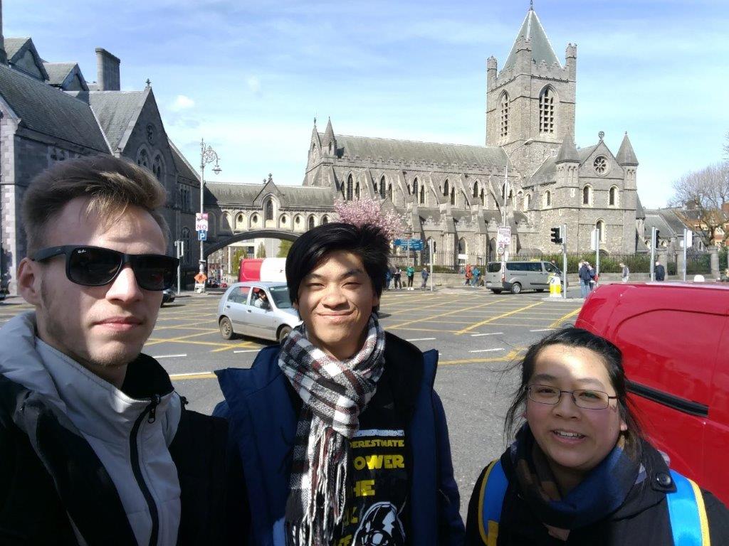 We visited the science gallery where you can watch some scientific illusions. For example, a picture made out of instant cheese. Then we went to The National Museum of Ireland – Natural History (Dublin) where you can see some stuffed animals, the St Patrick’s Cathedral (for which you had to pay an admission fee of 10 pounds), grassland in front of the cathedral (which was very beautiful) and the Dublin Trinity College (where you can see the book of Kells). We also went to the comic store “sub-city” at St. George’s Market (Dublin) where we wanted to visit the anime store “betterlife”. I didn’t buy anything because there was nothing I wanted. Instead, I went to an Irish souvenir shop to buy a t-shirt. Phi and I bought the same shirt to get a discount. I’ve also bought 2 jumpers which said “Ireland” in a very nice design. Unfortunately, they only accepted euros instead of pounds. In Dublin, some shops will accept both but make sure to have some euros with you (just in case).