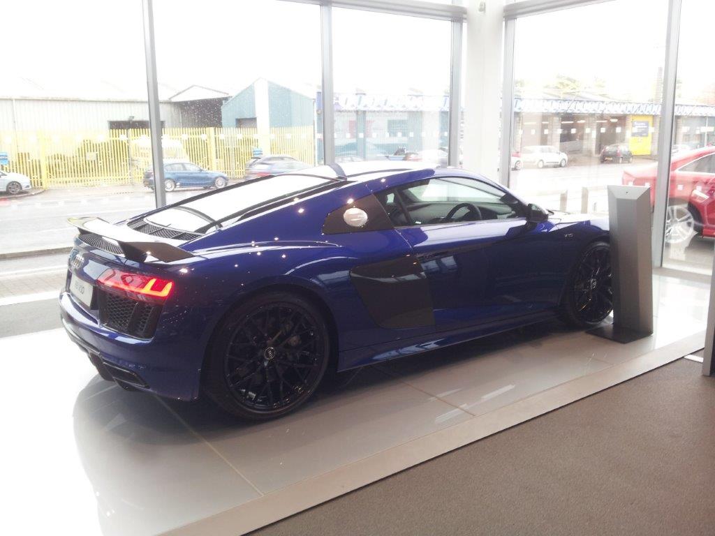 We also had to install some computer workplaces so that the associates could use a company computer or a laptop docking-station via a kvm switch. This brought the advantage that the associates only had to press a button (from the kvm switch) to switch the output anytime. It will redirect the output to the other devices but you still can use the same monitors, mice and keyboards for the two devices without unplugging them. Thats is a big advantage because the employees are very mobile with this setup and can work while speaking freely to a guest. Lucky for me this site was at porsche so I could see very nice cars again and take a picture with one of the cars.