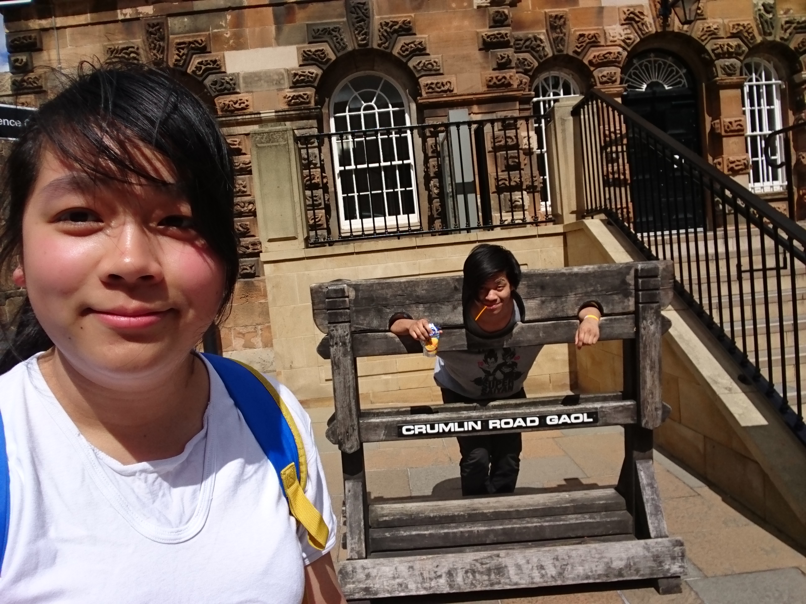 Another sunny day in Belfast. I can’t stand the warm temperature anymore. I even got epistaxis or well-known as the nosebleed. Having breakfast, uploading some blog entries and watching series started my Sunday. Son, Dome, Phi, Jenny and I left the house and went to Crumlin Road Gaol. The visiting of this prison was our plan for today. On the way to Belfast City Centre, we met Jakob and Leon. At Belfast City Hall, we met up with Tim and the group of eight German future information technology specialist specialised in system integration walked to Crumlin Road Gaol. Of course, we do a lot of sports here by walking a lot. The walk took us about one hour, but it was pleasant for the sunny weather (But not for Son and me, *snicker* Both of us don’t like sunlit days.). On our way, we saw St. Anne’s Cathedral, Ulster University and Saint Patrick’s Church. Adverse to the prison, there was a building, which was bought by someone for only 1 pound and refurbished for over 20,000 pounds.