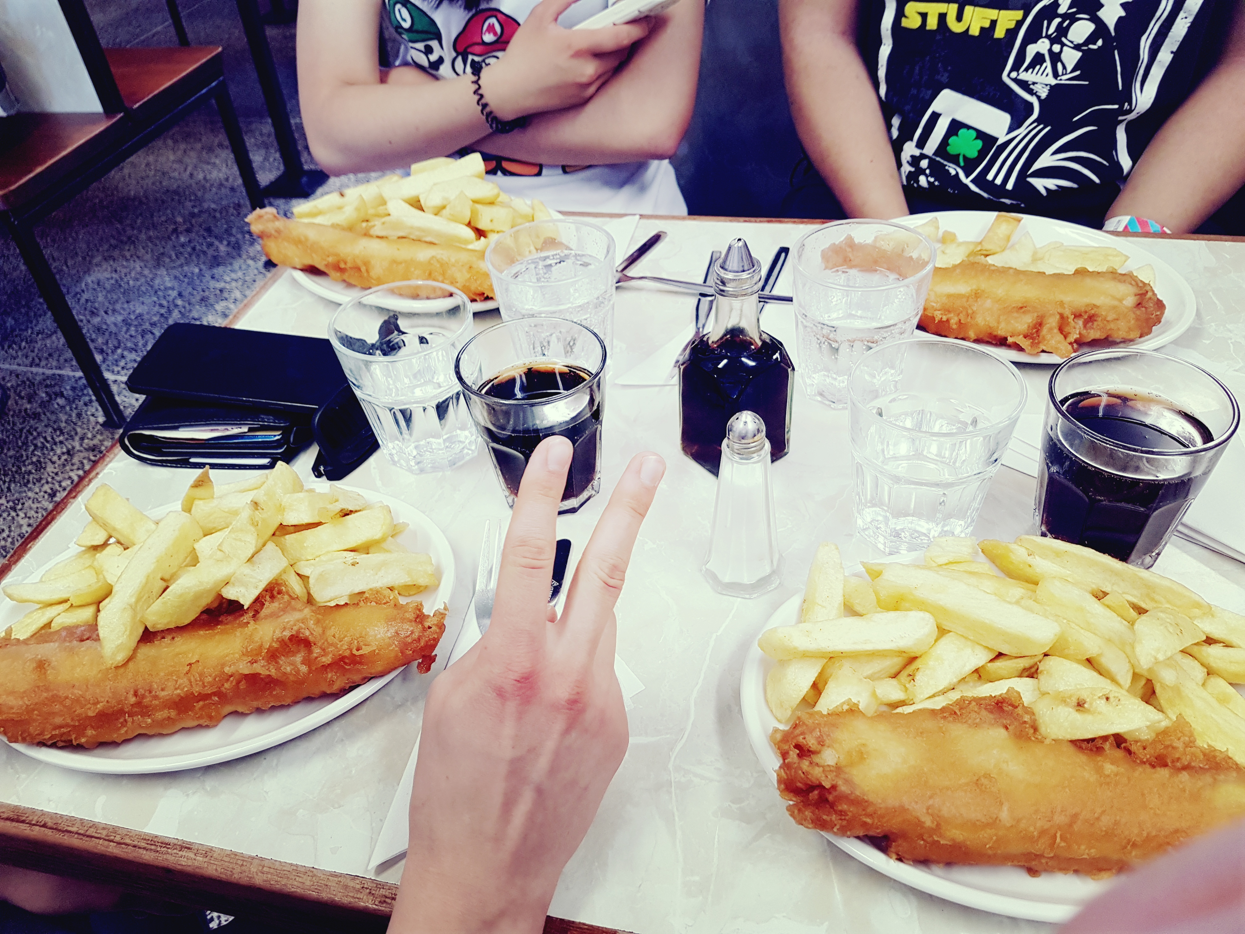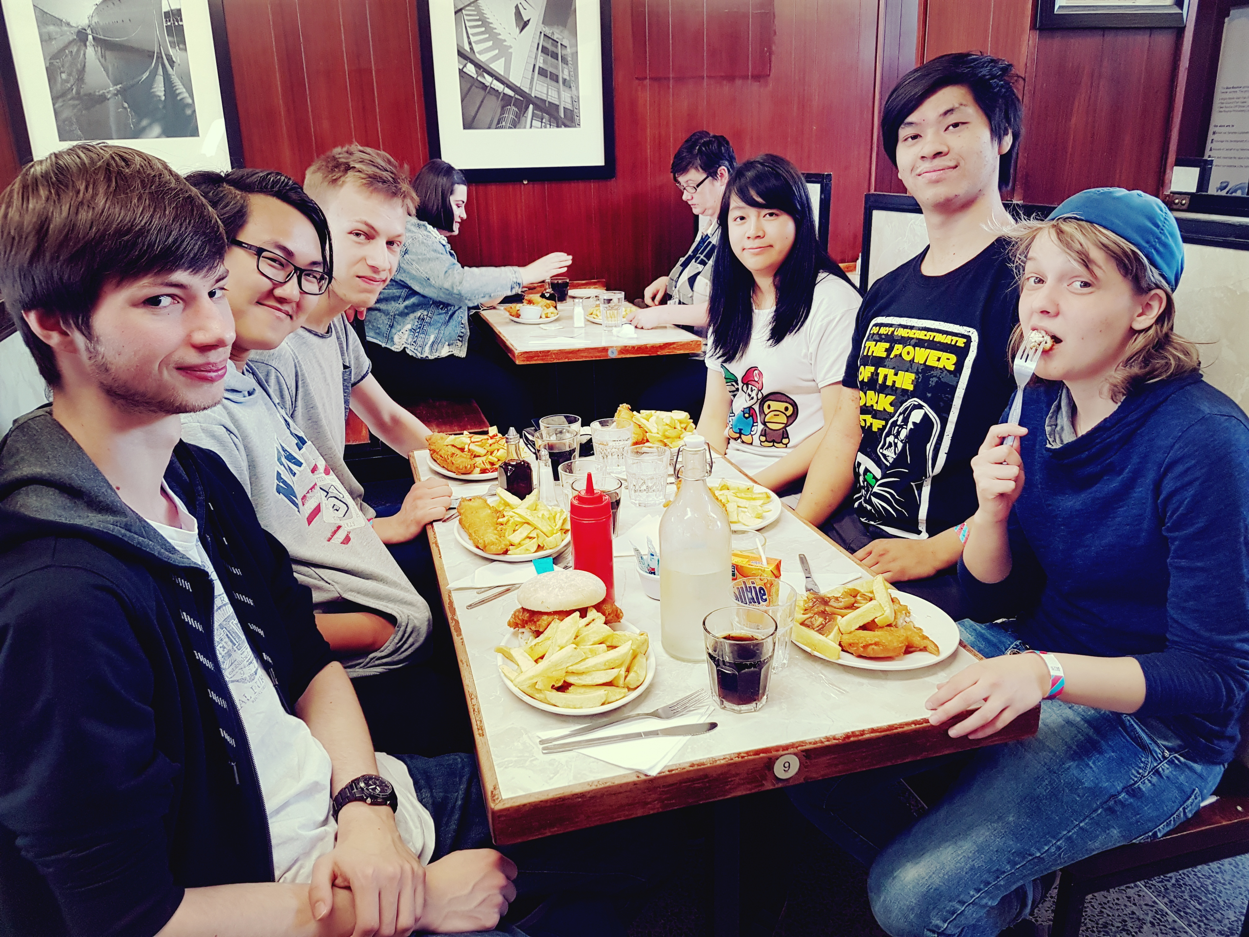 After a long night, I indulge in sleeping until 11 a.m. because I went to bed at 3.30 a.m. ^^‘ I didn’t plan anything for today, so I had the idea to buy souvenirs. Because of skipping breakfast and just had a ginger tea, the long-awaited visit of Jonh Longs’s Fish’Chips restaurant came today. The restaurant has served Fish’Chips for about 100 years. The waitress was very friendly. Later on, Robert joined us to buy presents for family and friends. After nearly one hour passed, I bought quite a lot, and in the end, I had to prepare a package to send them to Germany because I don’t have any weight left for the presents. My suitcase doesn’t have space either.