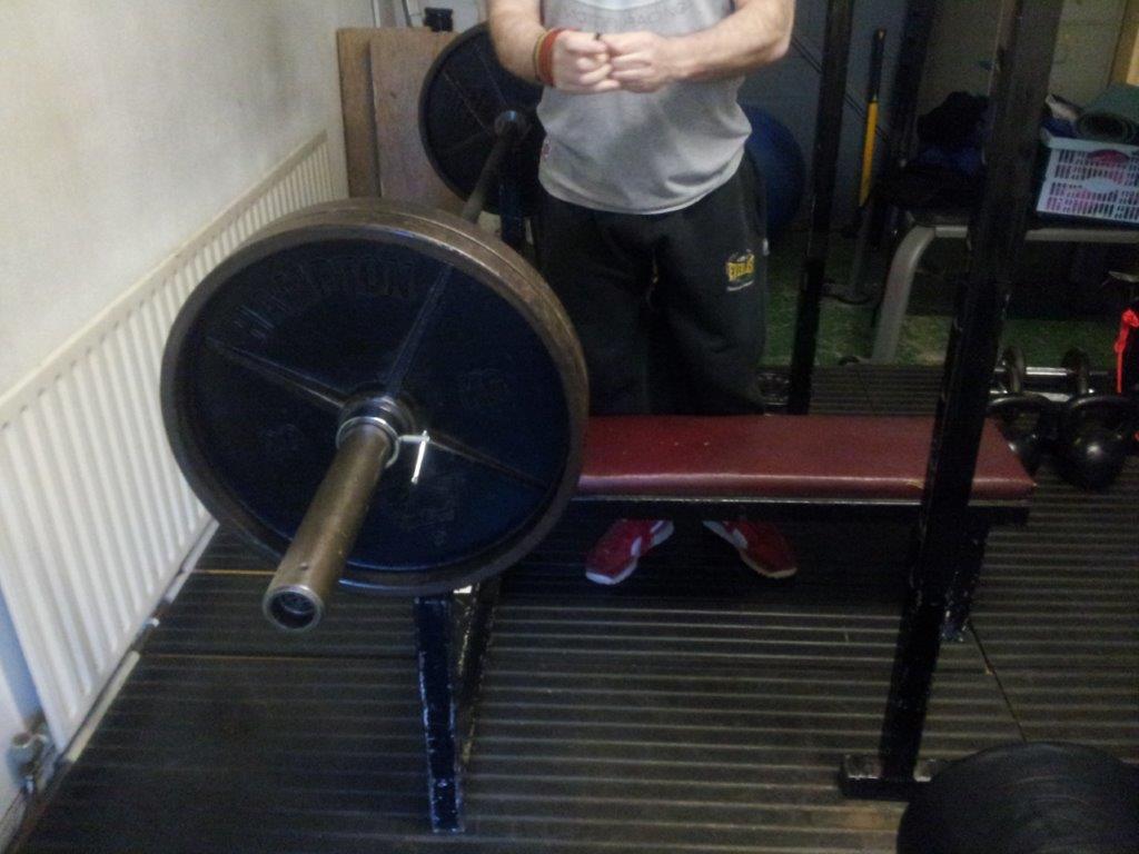 That’s why we did bench press 4×3 80kg, floor (bench)press 4×6 60 kg, body weight dips and isometric deadlift/