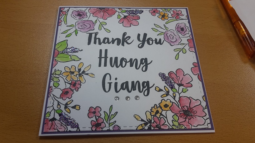 They were complimentary about me and my work but also sad that I have to leave. Sandra, another colleague, told me that she is going to miss my smile in the morning. I received a wonderful handmade card and a bracelet with a link ‚Thank you‘.