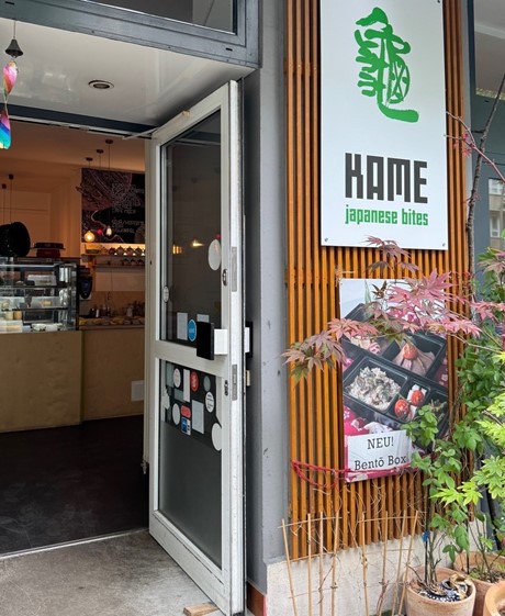 Our route began at KAME Japanese Bites on Leibnizstraße. This small café offered a calm and modest atmosphere and featured a counter filled with typical Japanese dishes such as onigiri, karaage, Japanese cakes, and melonpan. These treats could be enjoyed at small tables on site or taken away. Communication initially took place in Japanese but quickly shifted to English once it became clear that our group was not fluent in Japanese. The combination of language, presentation, and the exclusively Japanese staff gave the small, charming shop a sense of authenticity. Tucked away on a quieter side street, the café also invited guests to sit outside and observe the passersby.