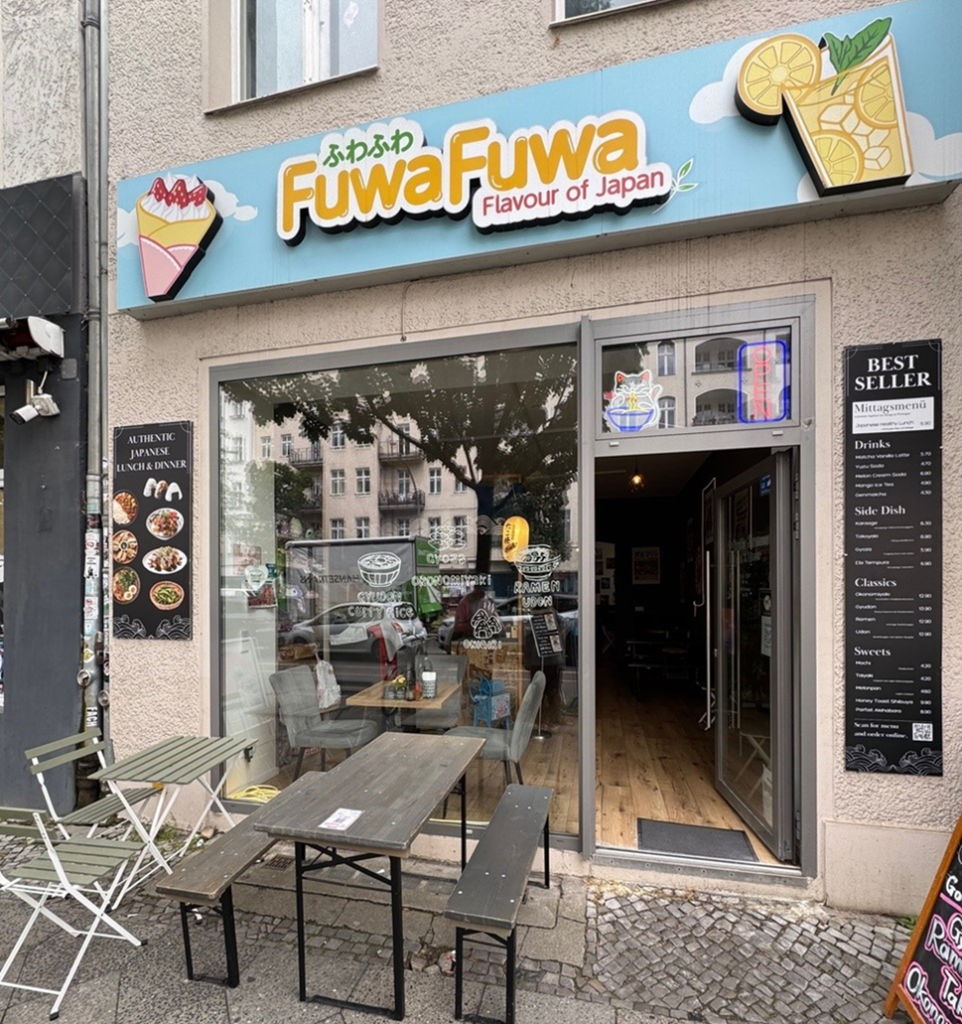 A particularly noticeable example of the connection between gastronomy and migrant communities could be seen at Fuwa Fuwa. The interior was filled with Japanese elements, including lo-fi music, posters of Japanese landscapes, and staff speaking Japanese. Especially striking was a flyer for a Japanese massage therapist displayed on the counter, a small but meaningful sign of the close bonds within the Japanese community in Berlin. Customers are encouraged to place orders through a website using a QR code and to pay digitally. Although an English version of the menu exists, many instructions are displayed in German. The intended audience seems to be younger and tech savvy.